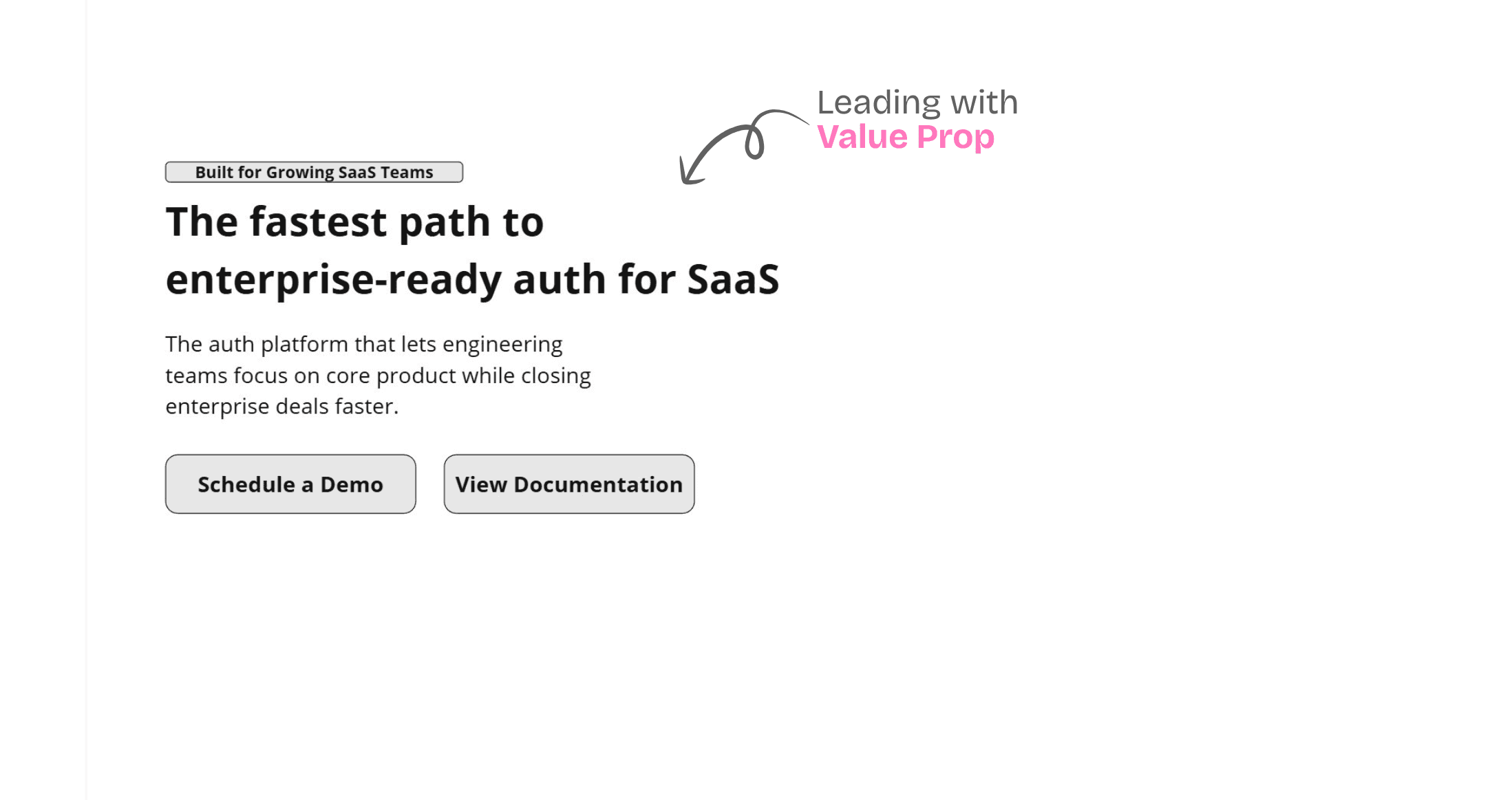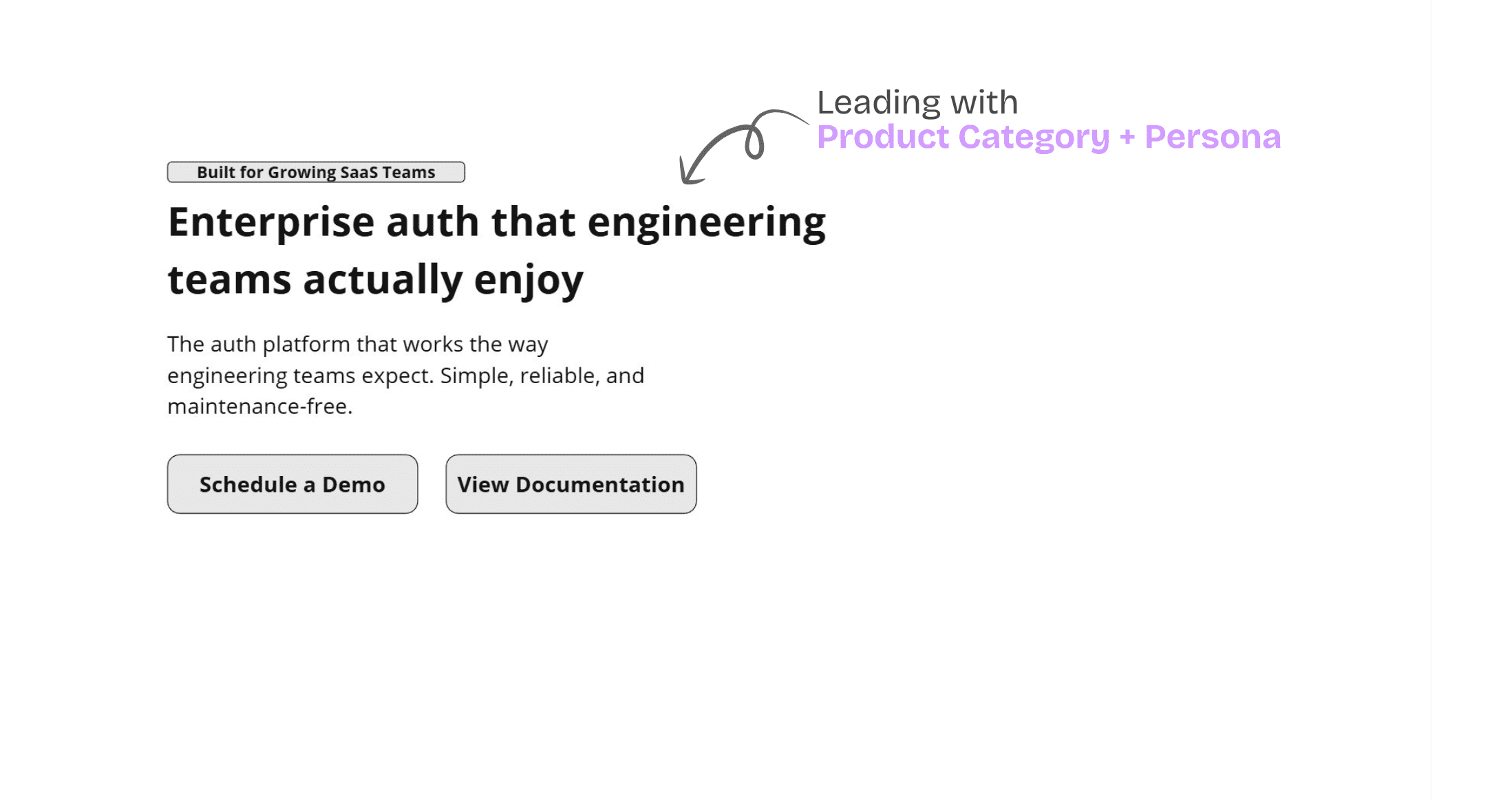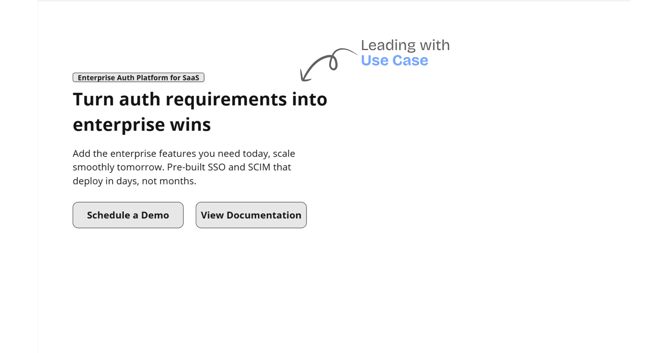 Scalekit had an organization-first architecture but treated it as a minor feature. Prospects could understand what Scalekit offered but couldn't see a compelling reason to switch. The messaging did not sufficiently differentiate Scalekit as a B2B SaaS-focused platform, nor did it clearly define the category it was playing in.