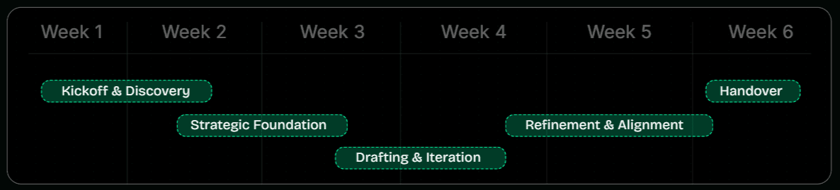 In the end, we delivered the complete asset set. Homepage copy, wireframes, and positioning deck. All