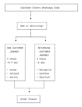 A rule-based WhatsApp chatbot that handles complete medicine ordering journeys—from initial inquiry to delivery tracking—with zero manual intervention for routine orders.
